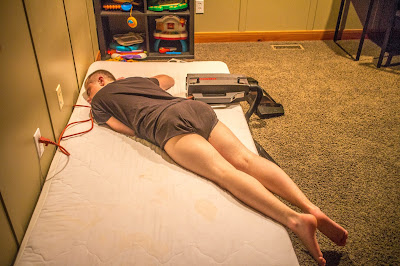 Weekends with Tanner are not complicated. They are simply exhausting. The whole weekend revolves around food, YouTube, noise and sleep. That's about it. Except that these few things rule every spare moment. Each meal is a total disaster clean up x3. Each YouTube video involves the world's stupidest criminals and daredevils. And when Tanner sees people get tazered or injured he jumps around in delight. Finally when he needs to go to sleep he dozes off to the hum of the vacuum or the incessant white noise of a radio.